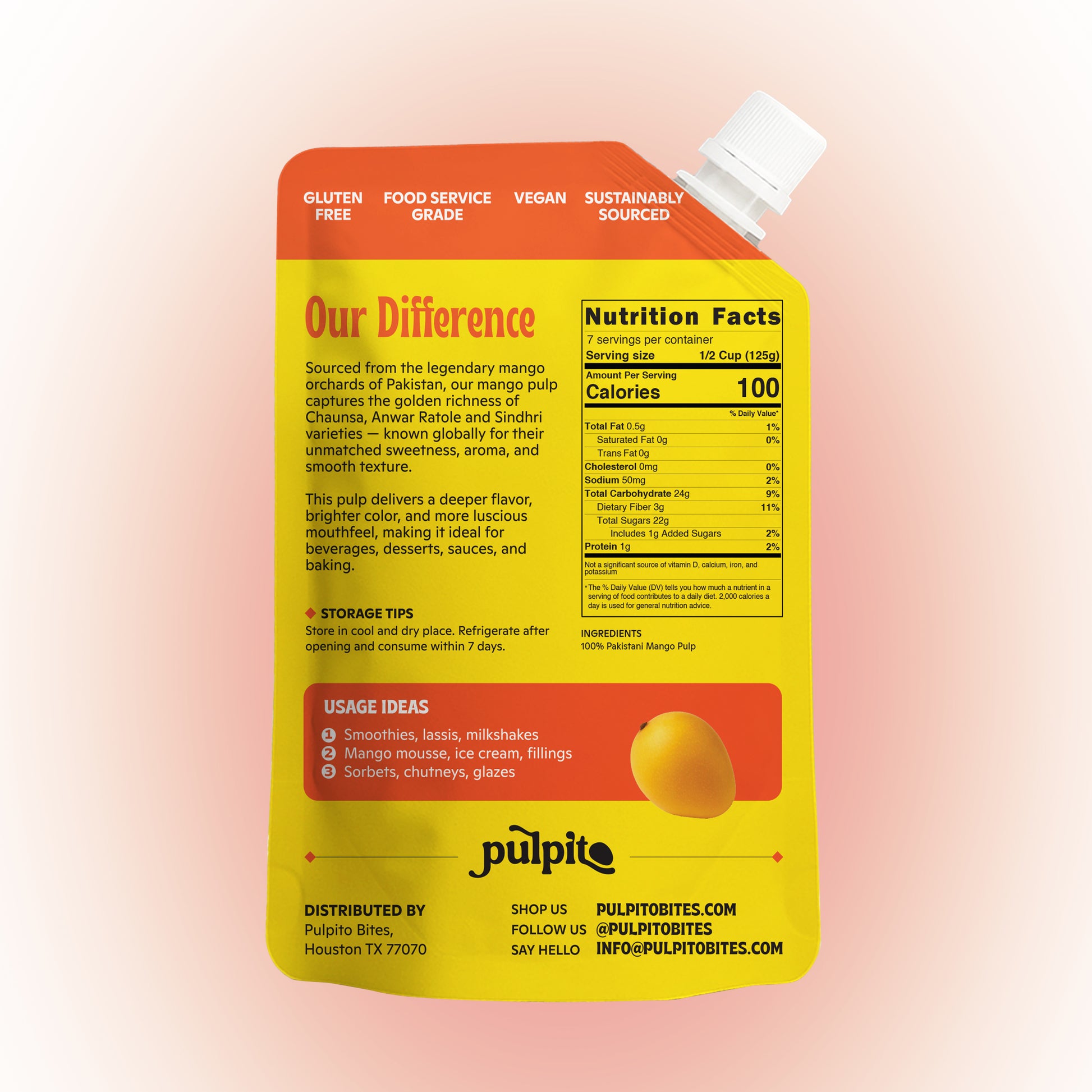 Sourced from the legendary mango orchards of Pakistan, our mango pulp captures the